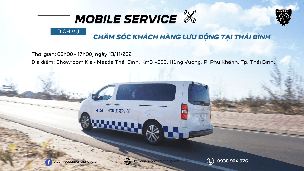 Nhằm mang đến những trải nghiệm thú vị và tuyệt vời nhất cho khách hàng, Peugeot Hải Phòng tổ chức sự kiện 𝗣𝗘𝗨𝗚𝗘𝗢𝗧 𝗠𝗢𝗕𝗜𝗟𝗘 𝗦𝗘𝗥𝗩𝗜𝗖𝗘 - BẢO DƯỠNG SỬA CHỮA LƯU ĐỘNG cho các khách hàng đang sở hữu xe Peugeot tại Thái Bình.