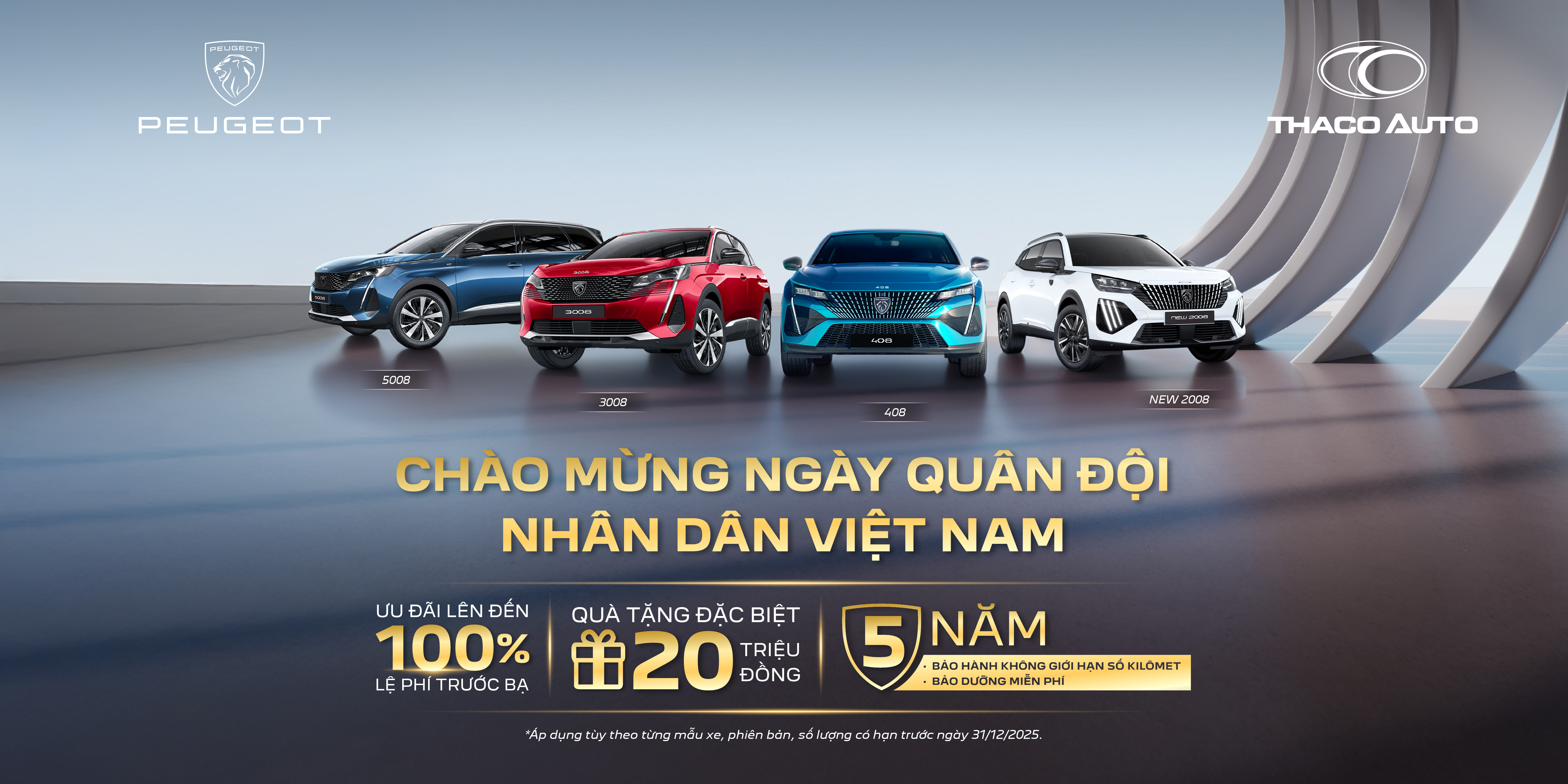 Chương trình mang đến cơ hội sở hữu các mẫu xe Peugeot đẳng cấp với chính sách ưu đãi hấp dẫn, đồng thời kiến tạo những trải nghiệm xứng tầm, khẳng định phong cách mạnh mẽ.