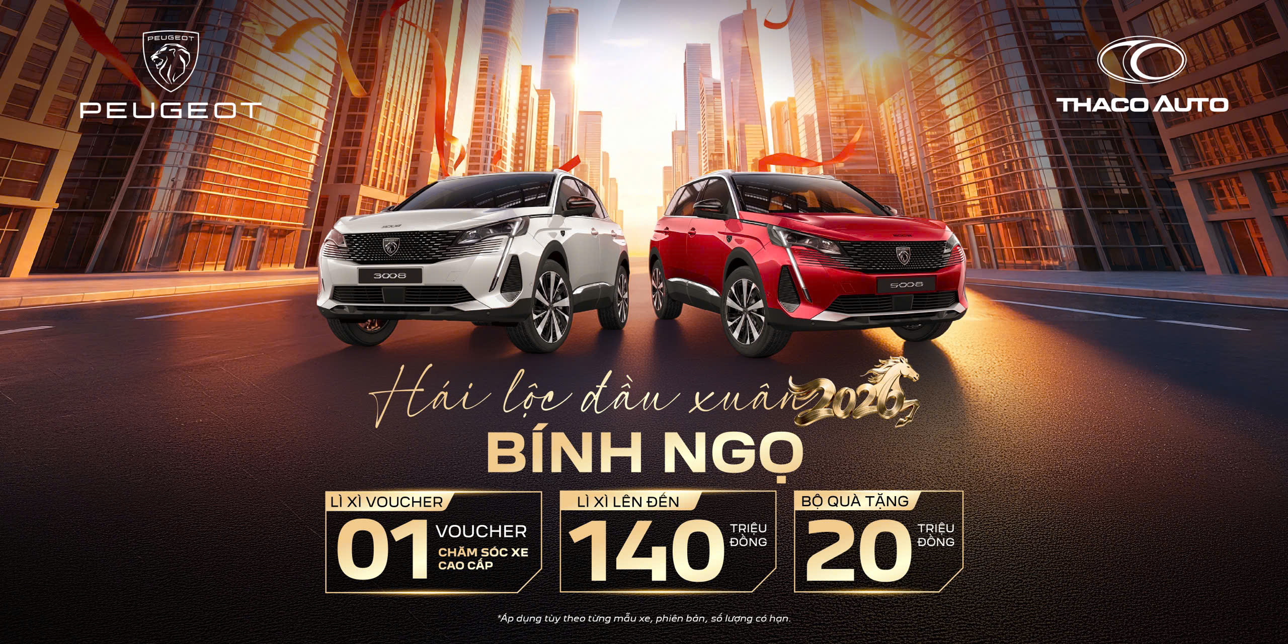 Xuân Bính Ngọ 2026 mở ra hành trình mới của thịnh vượng, bản lĩnh và thành công. Hòa chung không khí khởi đầu năm mới đầy hứng khởi, Peugeot Hải Phòng trân trọng gửi đến Quý Khách hàng chương trình “Hái Lộc Đầu Xuân” – Nơi mỗi quyết định cầm lái là một dấu ấn khởi đầu viên mãn.