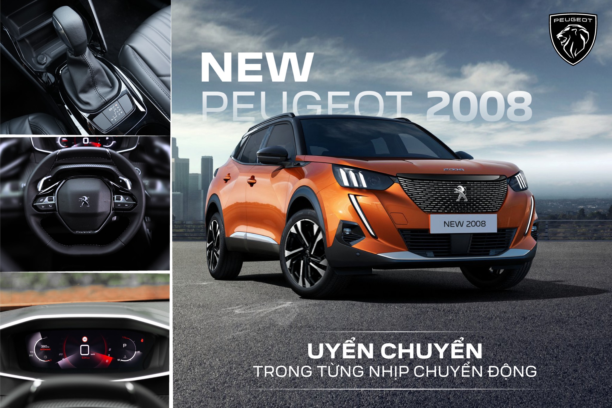 Ẩn sau sự uyển chuyển trong từng nhịp chuyển động là nguồn năng lượng tràn đầy cùng cảm giác lái thể thao đầy phấn khích từ khoang lái New Peugeot 2008.