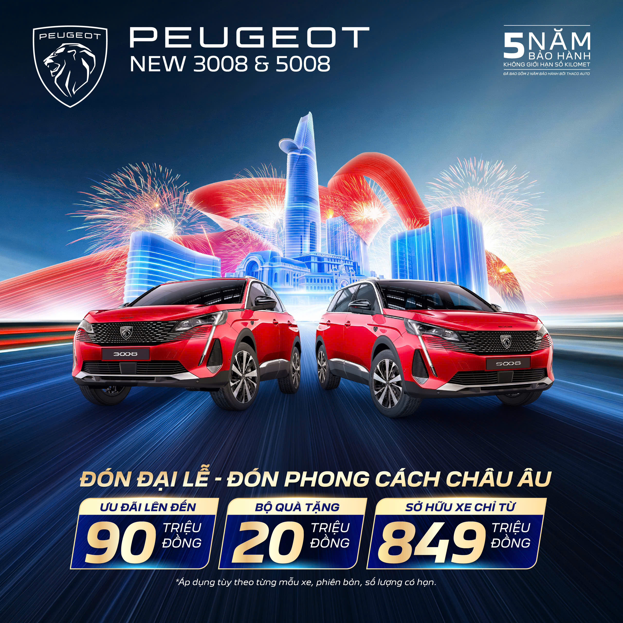 Bộ đôi SUV được trang bị các công nghệ an toàn như camera 360° hỗ trợ quan sát toàn cảnh, hỗ trợ giữ làn, cảnh báo điểm mù và hỗ trợ đỗ xe tự động, giúp người lái luôn an tâm và tận hưởng trọn vẹn từng khoảnh khắc phía sau tay lái. Khi sở hữu New Peugeot 3008 & 5008, khách hàng có thể nhận tổng ưu đãi lên đến 90 triệu đồng, sở hữu xe với giá chỉ từ 849 triệu đồng - lựa chọn dành cho những ai tìm kiếm sự cân bằng giữa tiện nghi, phong cách và tính linh hoạt trong mọi nhu cầu sử dụng.